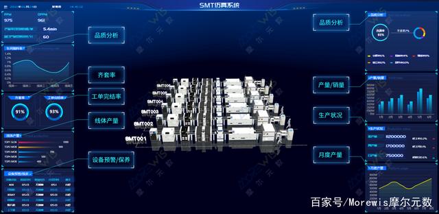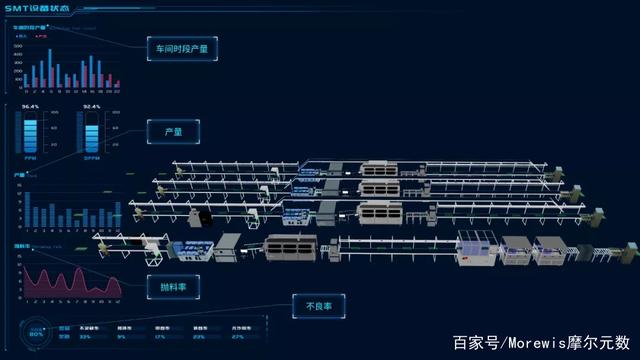 Wis3D平臺(tái)將數(shù)字孿生技術(shù)全面應(yīng)用在上板、SPI、貼片、回流焊、AOI、下板等工序全過(guò)程中,以動(dòng)畫(huà)形式真實(shí)還原生產(chǎn)現(xiàn)場(chǎng),使生產(chǎn)全流程透明化,實(shí)時(shí)監(jiān)控生產(chǎn)的一舉一動(dòng)。管理者不用去SMT車間就可以直觀的知道當(dāng)前產(chǎn)線在生產(chǎn)什么、接下來(lái)會(huì)生產(chǎn)什么。通過(guò)3D場(chǎng)景下的各類KPI數(shù)據(jù)分析,生成產(chǎn)能預(yù)測(cè)、成本監(jiān)控等數(shù)據(jù)聯(lián)動(dòng)推演分析,實(shí)時(shí)顯示計(jì)劃完成度、質(zhì)量DPPM、不良TOP5等數(shù)據(jù),相比平面化的BI報(bào)表、生產(chǎn)看板可讀性更強(qiáng),幫助管理者預(yù)見(jiàn)到發(fā)展態(tài)勢(shì),擁有“未卜先知”的能力。